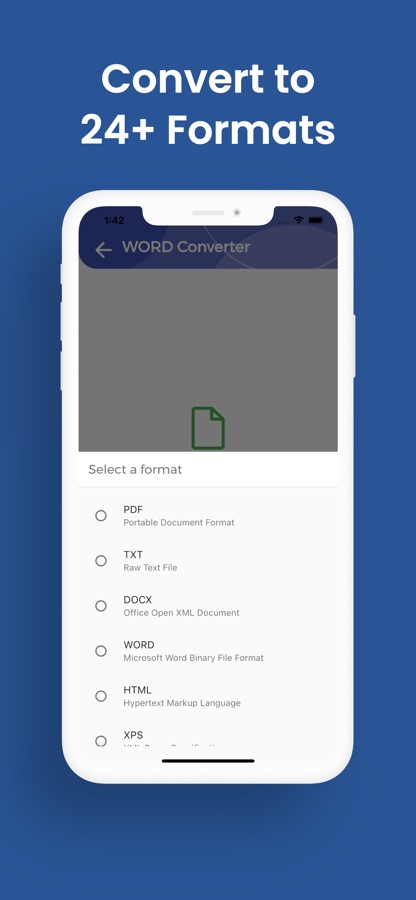 Нужно конвертировать DOCX в PDF, HTML или TXT? С Конвертером WORD вы получаете неограниченное количество быстрых конвертаций на вашем iPhone или iPad без оплаты, регистрации, только идеальные документы каждый раз.