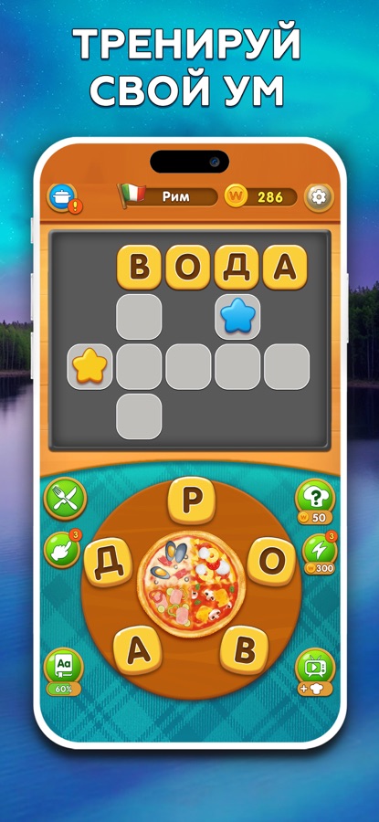 Новая игра из жанра словесных головоломок, где нужно находить слова из букв, расставленных по кругу.