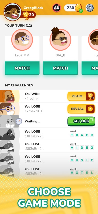 If you are a person that likes challenges, Word Pop allows you to invite your friends to play with you. Beyond this challenge mode you can also play random matches mode with other Word Pop players. But if you just want to train and have fun by yourself you can choose single player mode.