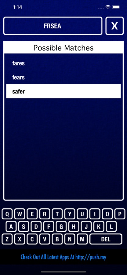 User with comments, bug reports or suggestions can contact us directly at info@appkan.my. We appreciate all of your responses in order to make Word Scramble Solver App more useful to all users.