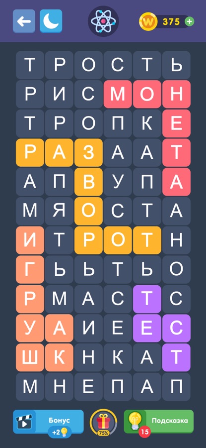 Составляйте слова из букв и погружайтесь в удивительный мир словесного разнообразия. Приятным бонусом станет то, что игра полностью поддерживает 8 языков: английский, индонезийский, испанский, немецкий, португальский, русский, турецкий, французский.