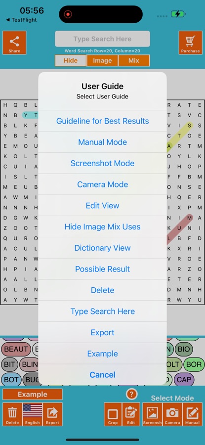 Word Search Solver AI Omniglot — это приложение, с помощью которого вы можете решить любой поиск слов размером 15×15 за 10–20 секунд, используя технологию распознавания текста или меньше. Максимальный размер — 40×40, который вы можете решить.