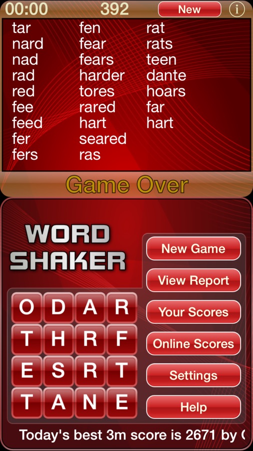 This is the classic version of Word Shaker, a word searching game with a twist: words don’t have to be in a straight line. Your goal is to earn the most points by finding words in a grid. Each letter has a particular point value, and you earn bonuses by forming longer words.