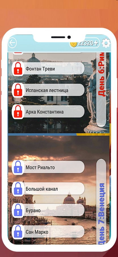 — На каждом уровне, Вы будете посещать различные города мира. Вы посетитите по 5 достопримечательностей в каждом городе в ходе мирового тура.