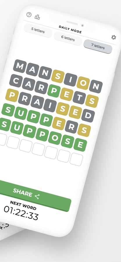 Several words are released each day, and they are the same for everyone around the world. Alternatively, you can play in practice mode for unlimited words completely free!