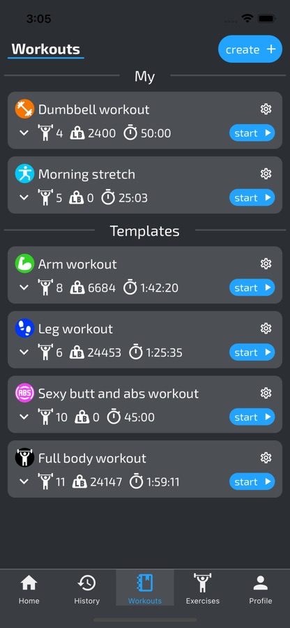 Планируйте свою фитнес программу из базы упражнений, создавайте свои собственные, составляйте расписание тренировок.