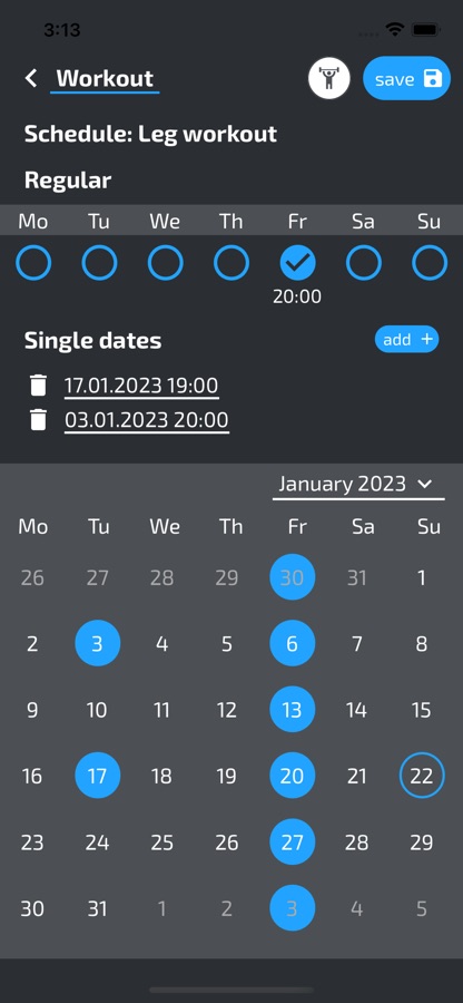 * Мощный планировщик тренировок позволит составить расписание занятий