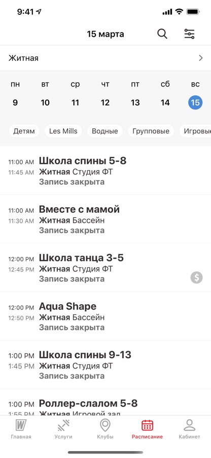 — Просматривать расписание групповых занятий в клубах, вне клубов и онлайн