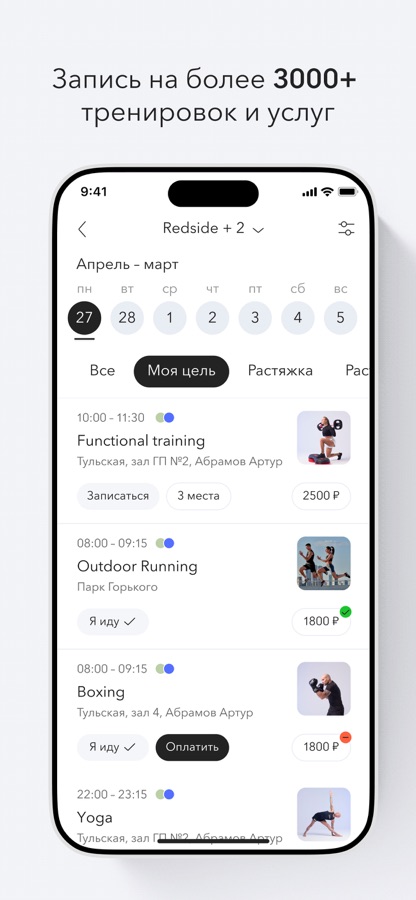 В расписании собраны групповые тренировки по всем интересующим клубам и студиям, а фильтры помогут найти нужные.
