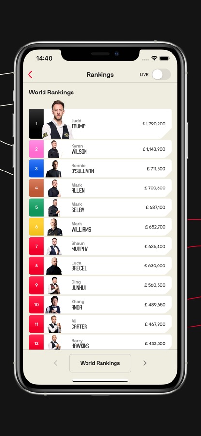 This is the new version of the official World Snooker Tour app, with vast improvements. A new and innovative match centre shows live scoring for every tournament and every match on the sport’s worldwide tour, with results, draws and fixtures as well as a wide range of exclusive data. Find out everything you need to know to follow snooker, from Ronnie O’Sullivan’s average shot time to Judd Trump’s season century tally!