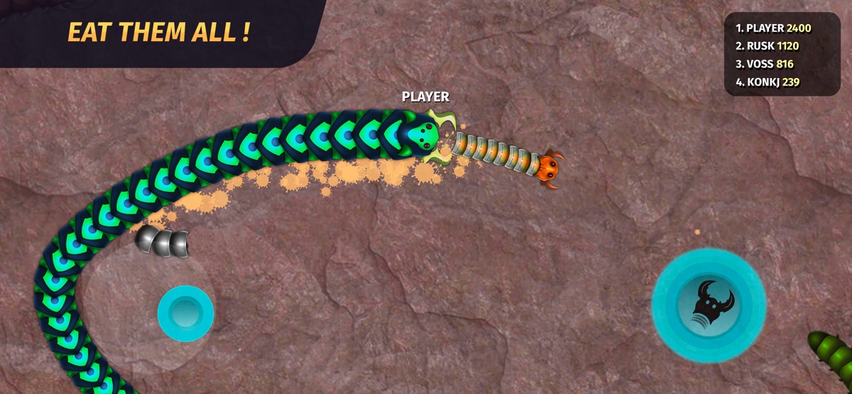 контролируйте своих червей и змей, чтобы есть больше вкусной еды, а черви становятся все длиннее и длиннее, чтобы выиграть битву с червями и стать самым большим червем из всех и набрать высокие баллы. играйте в змеиную игру бесплатно и присоединяйтесь к битве змей против червей в игре. Игры о битвах с ползающими змеями — это простые семейные игры. кормите свою змею и собирайте уникальные награды и монеты, эти монеты можно использовать для разблокировки новых скинов и нового характера змеи. Вы можете играть в эту игру со змеями онлайн и офлайн, независимо от того, где вы находитесь, вы можете играть в игру со змеями с соперниками, это будет лучшая игра для любителей змей.