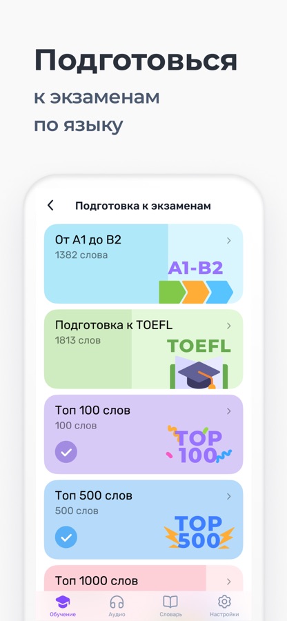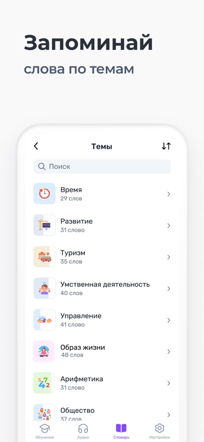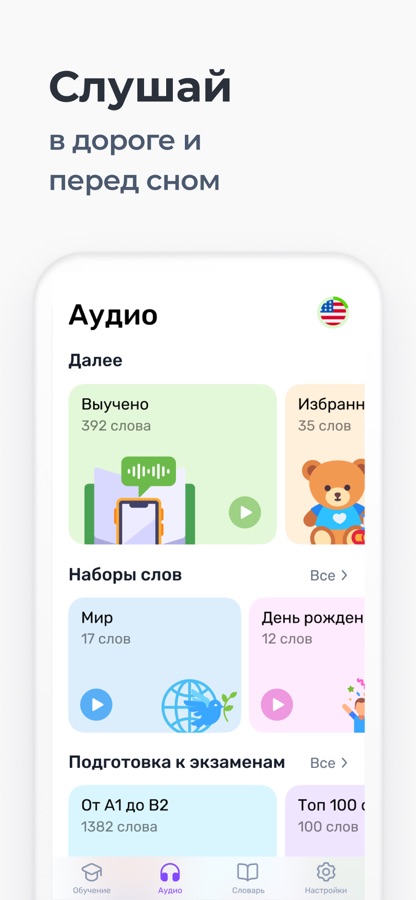 Быстрый доступ к наиболее популярным темам, позволяет ускорить прогресс в изучении языка. Качественные аудиозаписи, выполненные носителями языка, помогают говорить правильно. Учиться говорить на новых языках теперь можно даже перед сном или в транспорте. Просто слушайте, повторяйте и запоминайте слова в новом аудио режиме!