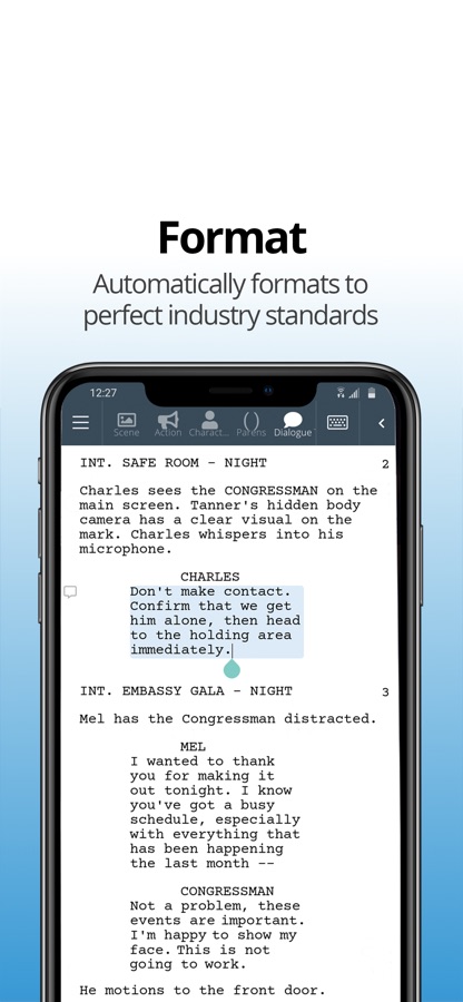 A simple and intuitive interface lets you dive into writing instantly on the go or as you lay in bed and stare at your phone screen (check out dark editor if that’s you). While we’ve focused on ease of use for mobile, we also haven’t restricted you from taking advantage of all of the power that WriterDuet has to offer on other platforms. So go wild!