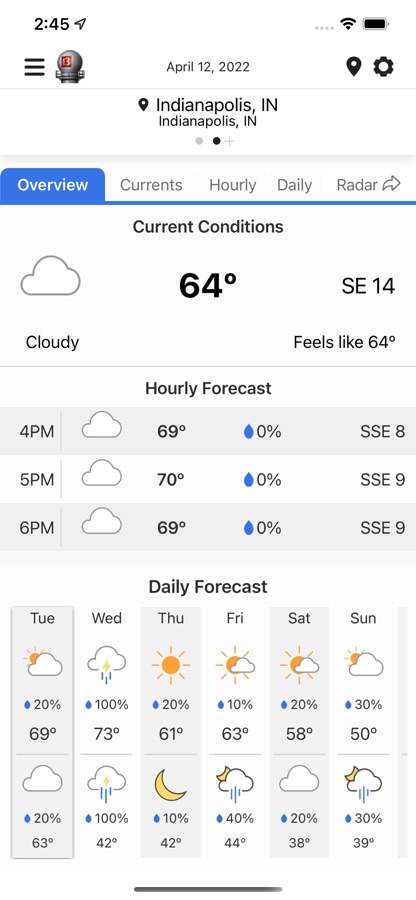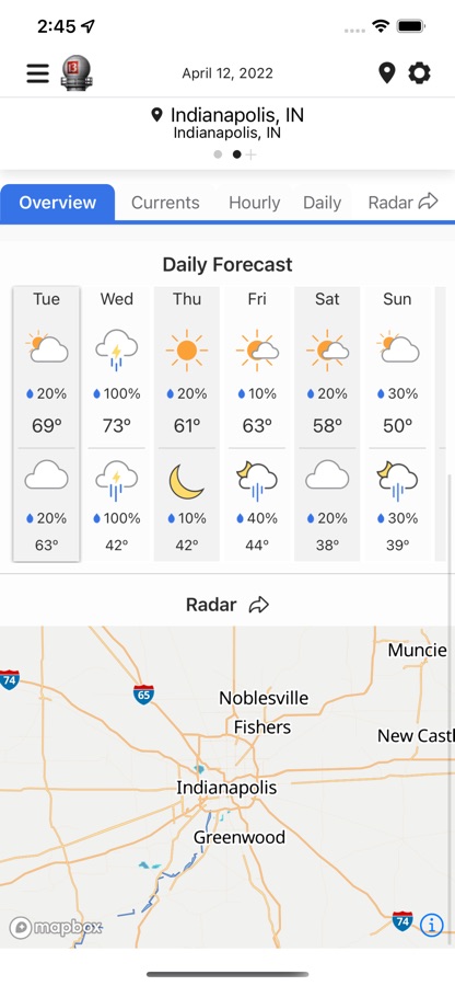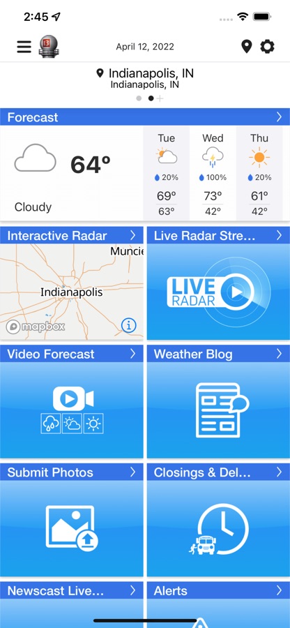 Get the latest weather on WTHR’s Live Doppler 13 Weather app. The app has been completely redesigned with an improved radar experience and features the best weather alerts and warnings in Indianapolis. See the latest radar and zoom down to your neighborhood to find out what’s happening there. Get current conditions for wherever you are, watch the WTHR Live Doppler 13 Weather team give you the most up to date information and stay in the know while you’re on the go.