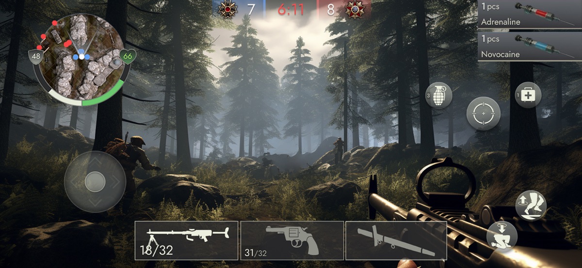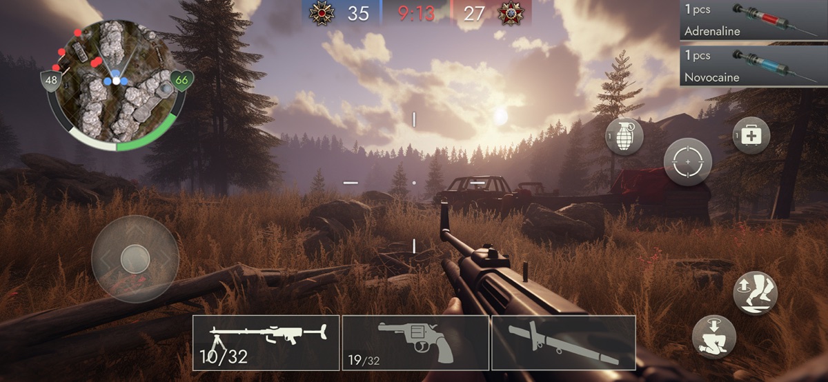В вашем распоряжении огромный арсенал из 23 различных оружий, включая легендарные снайперские винтовки Мосина и Маузер, мощный автомат Томпсона, а также широкий выбор пистолетов и скорострельных пулеметов. Почувствуйте мощь и разнообразие оружия, погружаясь в динамичный экшн шутере.