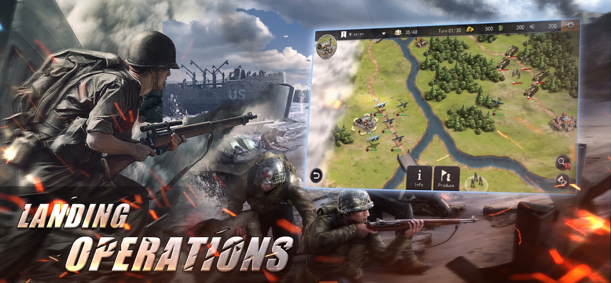 Правильная военная стратегия — ключ к окончательной победе! Трехмерный ландшафт дает более богатую стратегию. Планируйте свои атаки и захватывайте или разрушайте соединительные мосты, бункеры и блокпосты, чтобы получить тактическое преимущество! Каждая ваша тактика определит исход второй мировой войны.