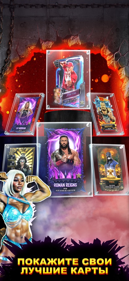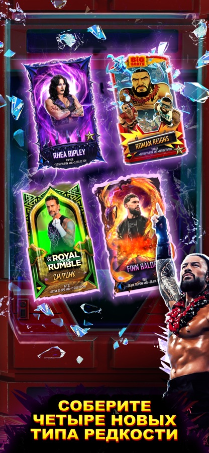 • Найдите своих любимых рестлеров в ШЕСТИ НОВЫХ РЕДКОСТЯХ: Chaos, Ignition, Prize, Adventure, Static, Royal Rumble, Ember.