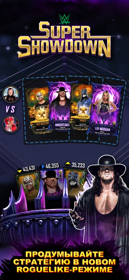 • Совершенно новый ROGUELIKE-РЕЖИМ Super ShowDown уже здесь! Набирайте суперзвезд, побеждайте в битвах, улучшайте свою колоду тактическими предметами и продолжайте выигрывать все более сложные раунды, чтобы получить лучшие награды.