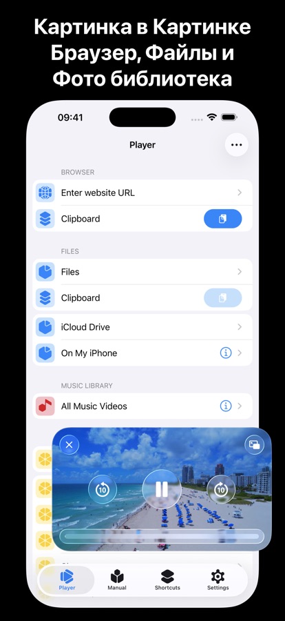 — Одновременное воспроизведение видео «Картинка в картинке» с другими видеоприложениями со звуком или без.