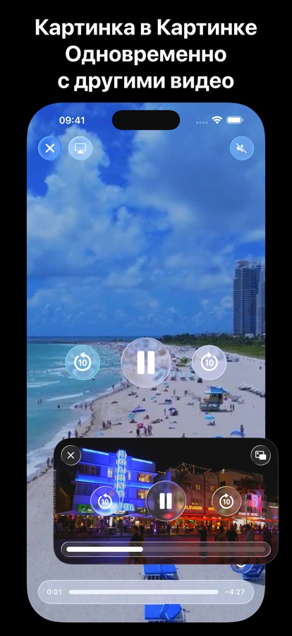— Одновременное воспроизведение видео «Картинка в картинке» с другими видеоприложениями без звука.