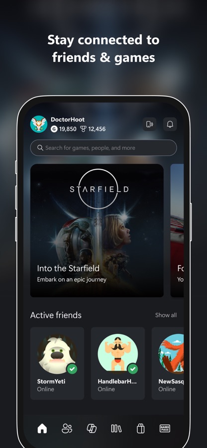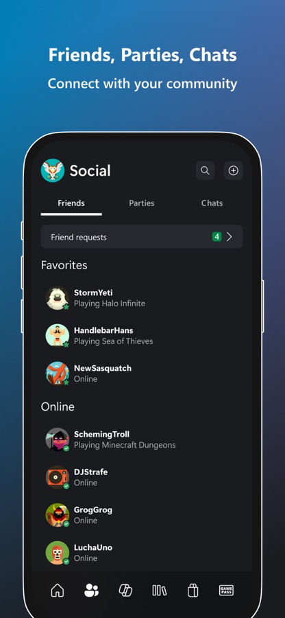 — Приложение Xbox для игр и общения с друзьями.