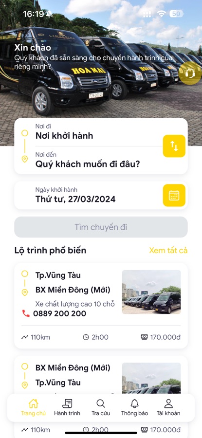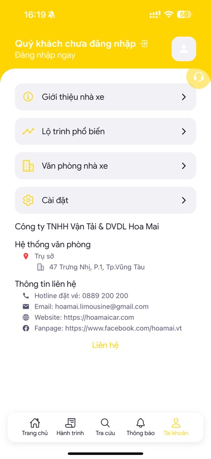 Xe Hoa Mai là ứng dụng đặt vé và tra cứu thông tin xe Hoa Mai trực tuyến đi tuyến Hồ Chí Minh — Vũng Tàu, mang lại trải nghiệm nhanh chóng và tiện lợi nhất từ việc đặt vé đến sử dụng dịch vụ vận chuyển hành khách. Xe Hoa Mai hân hạnh tạo dựng nên những giá trị mới cho dịch vụ vận chuyển hành khách cao cấp tuyến Hồ Chí Minh — Vũng Tàu với đội ngũ nhân viên chuyên nghiệp, giàu kinh nghiệm trong lĩnh vực vận tải hành khách và hệ thống xe cao cấp từ dòng Limousine đời mới nhất.