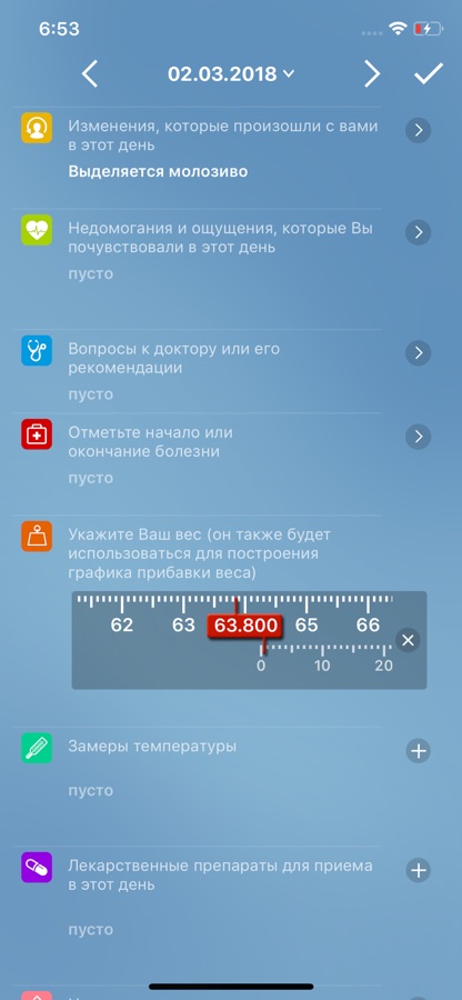 — В отдельном разделе расписан график посещения врача, подробно описывается какие анализы и наблюдения следует пройти будущей маме. Есть возможность помечать какие анализы (посещения врача) Вы уже сделали. И при желании отметки можно легко перенести в ваш дневник.