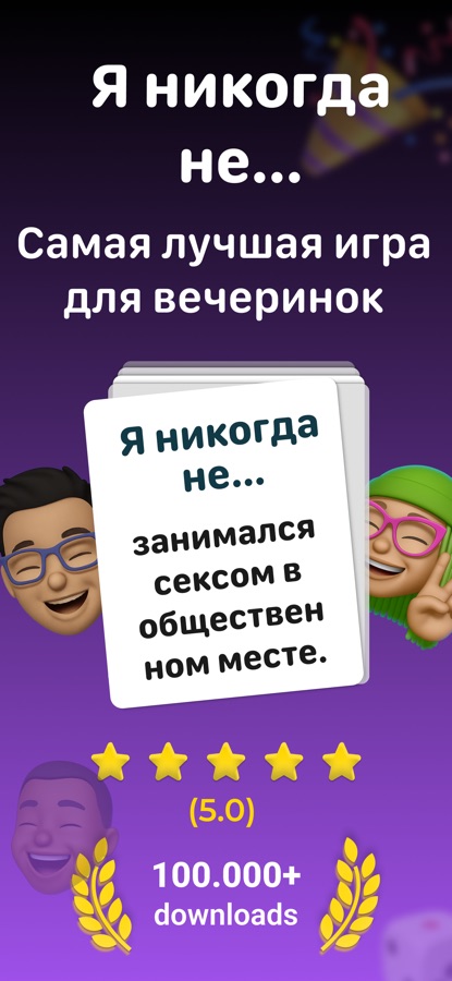 Скачайте приложение Я никогда не 18 Игра для iOS бесплатно - последняя версия (1.3.23) уже доступна для установки на ваш iPhone или iPad.