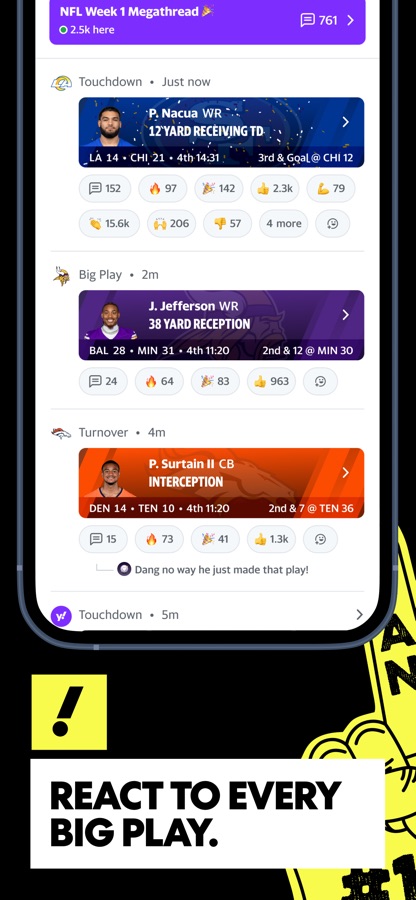 • Live Activities for your favorite teams and every big event. Now including Key Plays so you can follow every TD and turnover in the NFL from your lock screen with the Key Plays Live Activity.