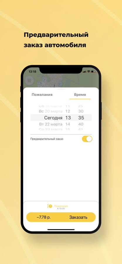 Выберите опцию “Предварительный заказ”. Поиск автомобиля начнется незадолго до заказа поездки, и автомобиль приедет к назначенному времени. Также вы будете заранее знать стоимость поездки.