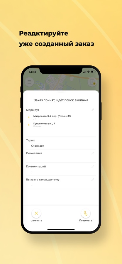 Отредактируйте его: поменяйте пожелания, остановки, адрес назначения и тариф.