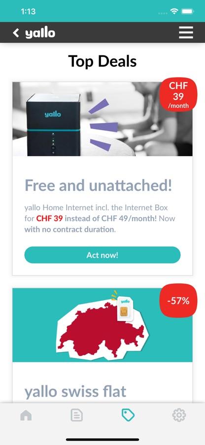 Note: The App is available exclusively to those with a yallo Mobile Switzerland SIM card.
