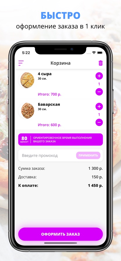 Скачивайте наше приложение, оформляйте заказ и наслаждайтесь любимой едой, где бы Вы ни были! Приятного аппетита!