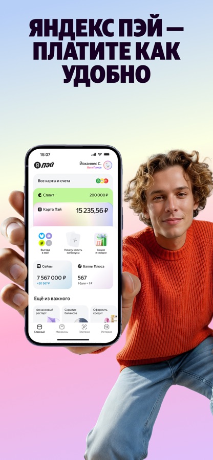 Оплачивайте покупку через Яндекс Пэй по QR и получайте быстрый кешбэк баллами Плюса. А ещё сплитуйте покупки и пользуйтесь скидками и бонусами.