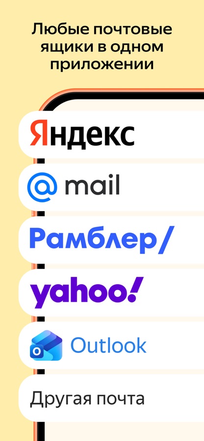 • Приложение поддерживает работу с несколькими почтовыми аккаунтами одновременно, в том числе с mail, outlook, yahoo, rambler, iCloud. Читайте письма из разных почтовых ящиков в одном приложении.