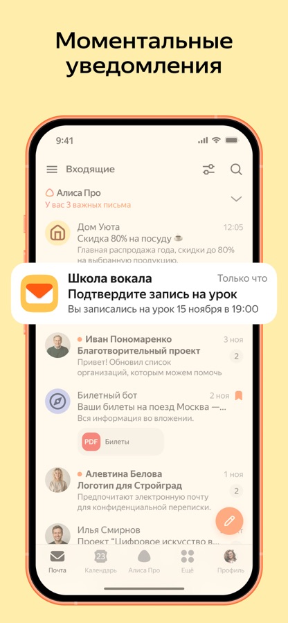 • Защитите себя от взлома и спама. Чтобы посторонние не могли прочитать ваши письма, включите вход по пин-коду. Кроме того, от нежелательных рассылок вас надёжно защитят умные алгоритмы Почты.