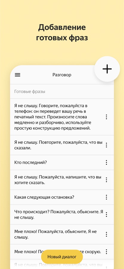 В приложении есть и готовые реплики: например, если вам надо начать разговор, занять очередь в магазине или попросить о помощи. Вы также можете добавить в список свои варианты.