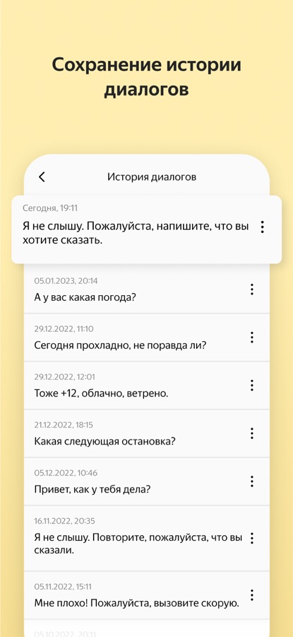 Приложение аккуратно записывает все реплики (и устные, и письменные) в виде диалогов. Любой диалог можно продолжить.
