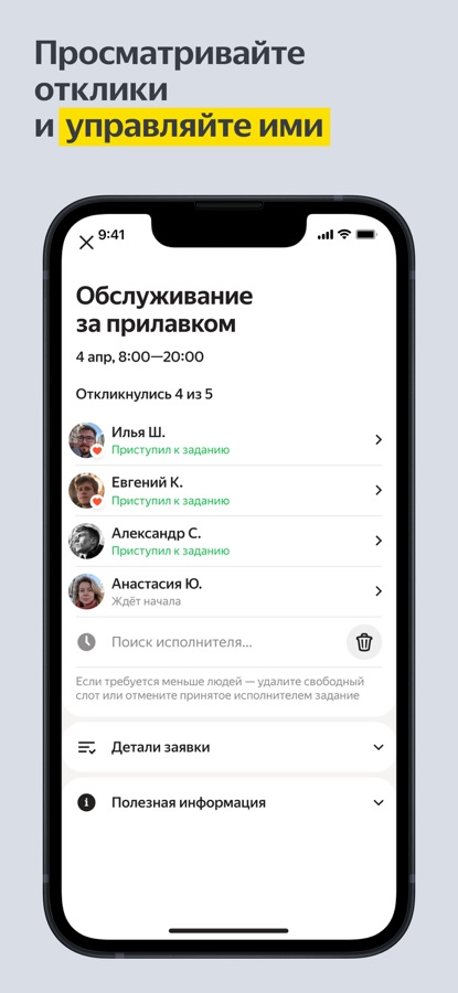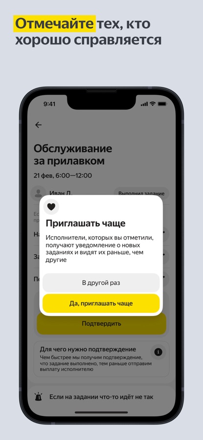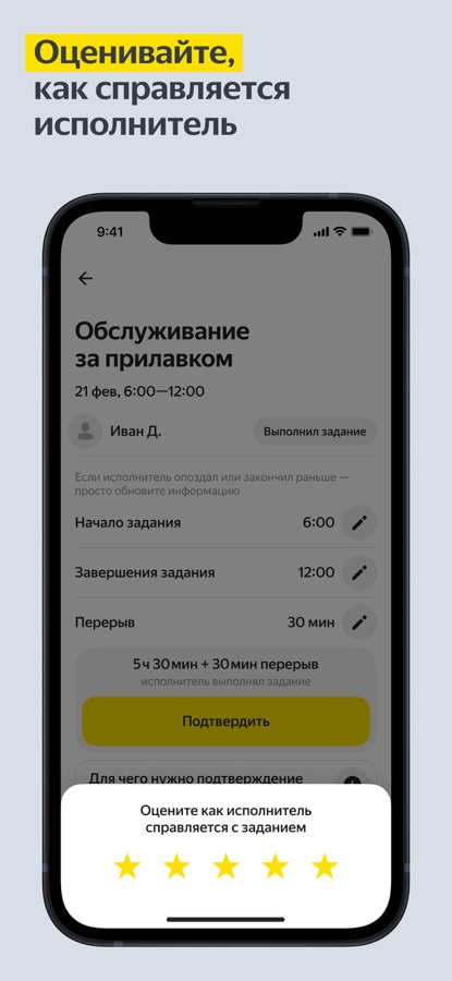 → подтверждайте время начала и окончания задания — прямо в приложении, одним кликом,