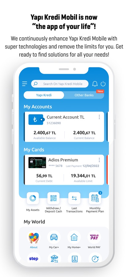 • Yapı Kredi Mobile evolves with super technologies and continues to break boundaries. Get ready to find all the solutions you need in one place!