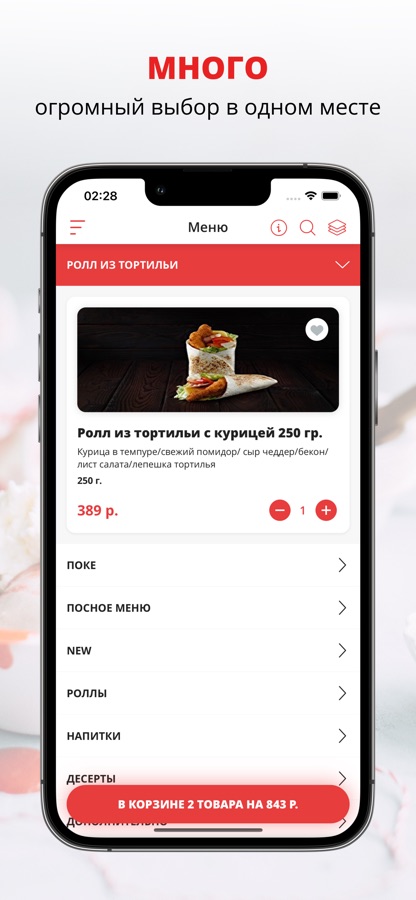 Сделайте свое ежедневное меню разнообразнее, а время у плиты – минимальным. Выбирайте, что вам по душе именно сегодня: нежные суши и роллы, горячая пицца, лапша в коробочке… Меню большое и разнообразное – ведь блюд у нас более 140!