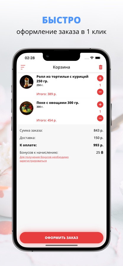 Скачивайте наше приложение, оформляйте заказ и наслаждайтесь любимой едой, где бы Вы ни были! Приятного аппетита!