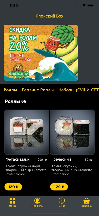 Сделав заказ в приложении «ЯПОНСКИЙ БОХ», Вы получите ароматные и вкусные суши, приготовленные из лучших продуктов, которые не оставят равнодушными и знатоков, и тех, кто их ранее не пробовал.