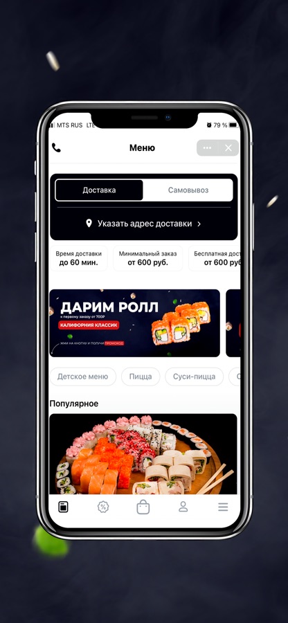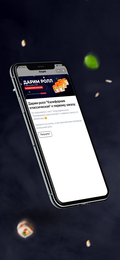 Порадуйте себя вкусными роллами. Получите скидку 200₽ к первому заказу от 1000₽ в приложении по промокоду – 7684!