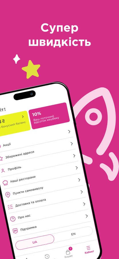 Швидке завантаження сторінок та покращений процес оформлення замовлення на суші, піцу та інші улюблені страви.