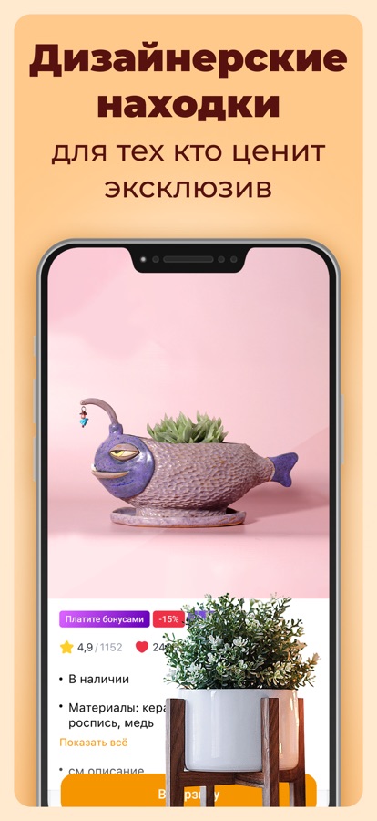 Делайте покупки в тысячах магазинов и мастерских. В приложении можно найти больше 3 миллионов товаров для себя и в подарок. Натуральная косметика, экологичные товары для детей, декор и мебель от российских производителей, эксклюзивная одежда и обувь, крафтовые чаи и ремесленные продукты доступны в наличии и под заказ.