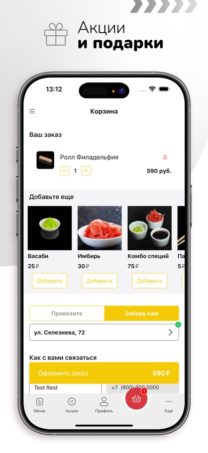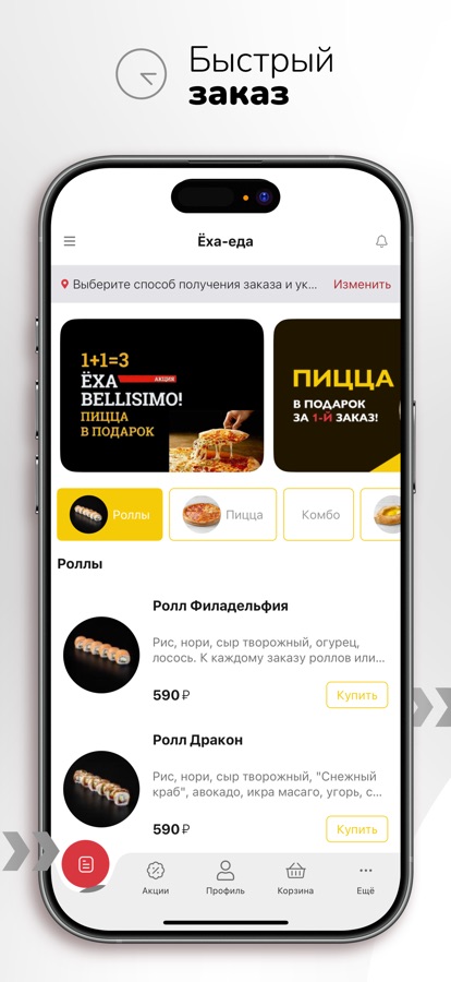 Установите наше приложение – заказывайте вкусную еду в 2 клика и первыми узнавайте о наших акциях! Приятного аппетита!