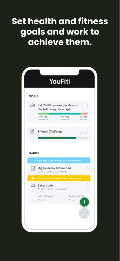 With the YouFit Gyms App, you can start tracking your workouts and meals, measuring results, and achieving your fitness goals, all with the help of your personal trainer.
