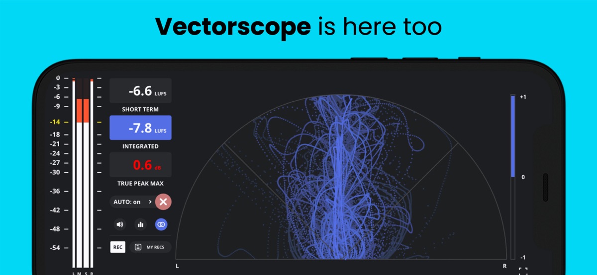 Youlean Loudness Meter Lite is a professional meter that will help you analyze LUFS and True Peak units, Spectrum, and Vectorscope. You can also analyze audio via a local Wi-Fi network coming from a desktop DAW like a Logic Pro.