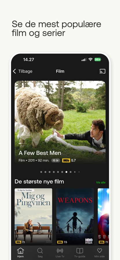Med YouSee Play-appen kan du se tv, film og serier på din mobil eller tablet – vi giver dig adgang til timevis af underholdning, hvor du vil og når du vil. Appen samler dine tv-kanaler, massevis af film og serier og Danmarks største børneunivers.